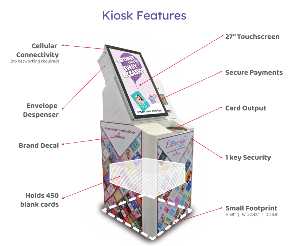 Expressions Card Kiosks recently changed the greeting and gift card industry by releasing their greeting & gift card kiosk. Their stand alone point of sale provides your customers with thousands of high quality, greeting card selections for every occasion, all of which are fully customizable and able to be created on demand. The card kiosk allows users to not only solve the number one cited problem in the greeting card industry (the card doesn’t say exactly what I want it to say) by allowing customers to write whatever messaging they wish, but it takes customization multiple steps further.